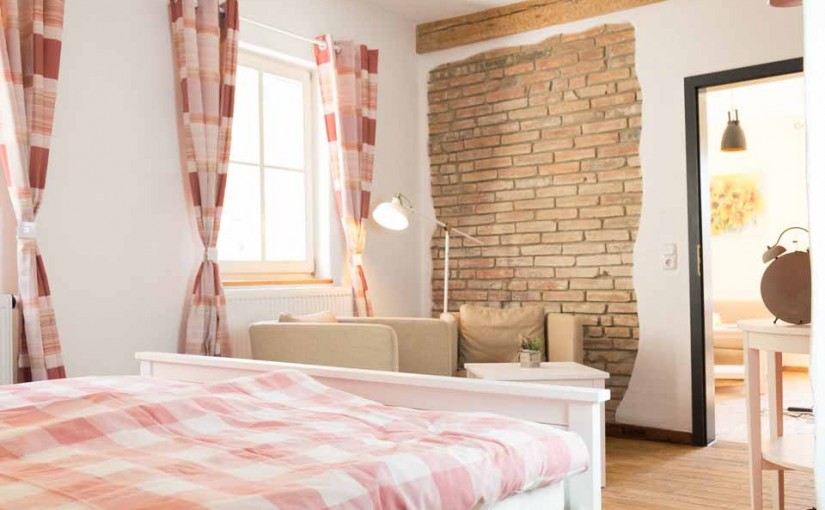 Im sehr stilvoll renovierten Schlafzimmer können unsere Gäste auf dem 160cm großen Doppelbett eine ruhige Nacht finden oder in der gemütlichen Leseecke verweilen. Das Apartment bietet Platz für bis zu 4 Personen.